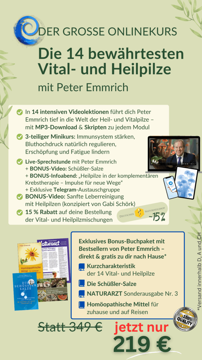 - 1 Live Infoabend mit Peter Emmrich: "Heilpilze in der komplementären Krebstherapie - Impulse für neue Wege"